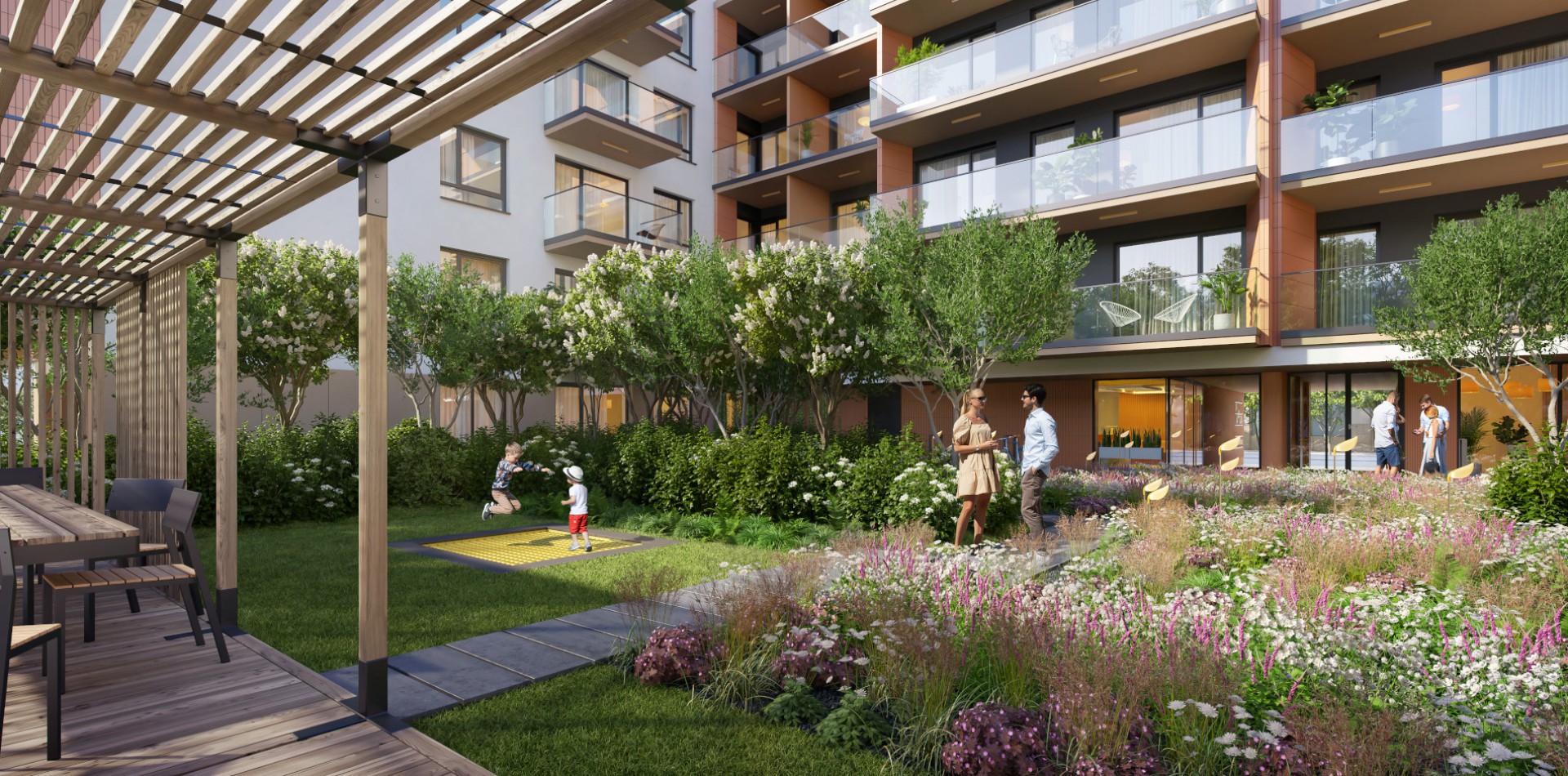 Na osiedlu Ursa Sky każdy jest mile widziany! Zaprojektowaliśmy funkcjonalne rozwiązania, które ułatwią codzienne życie mieszkańców.