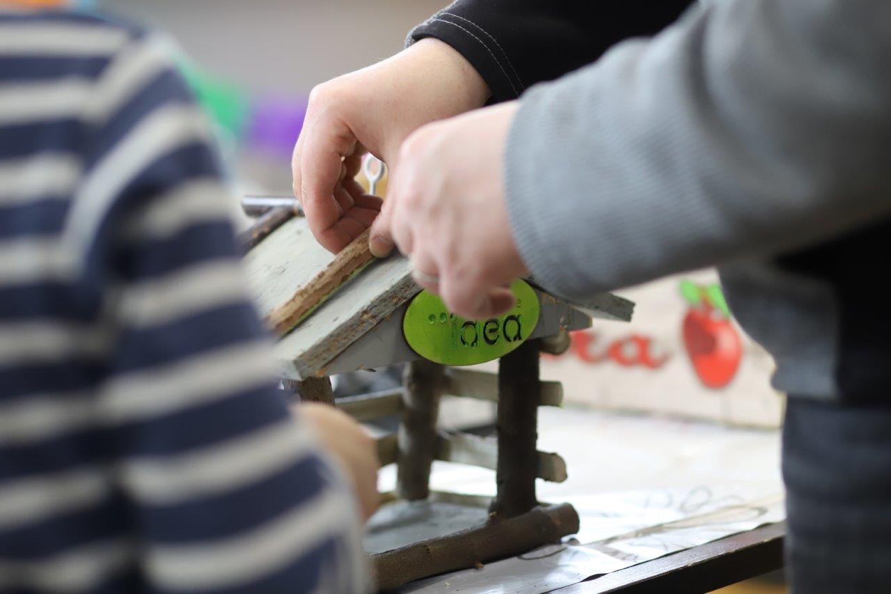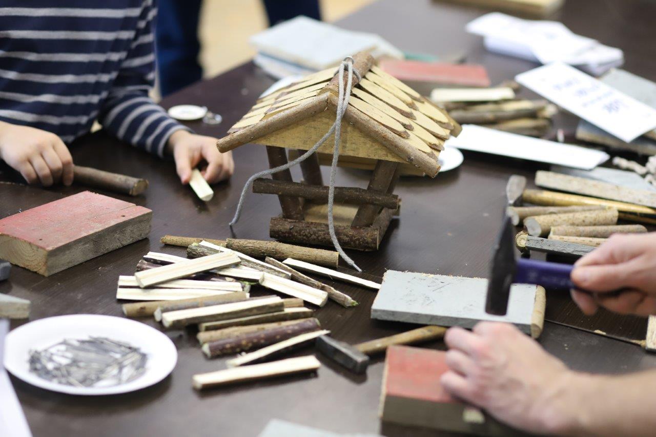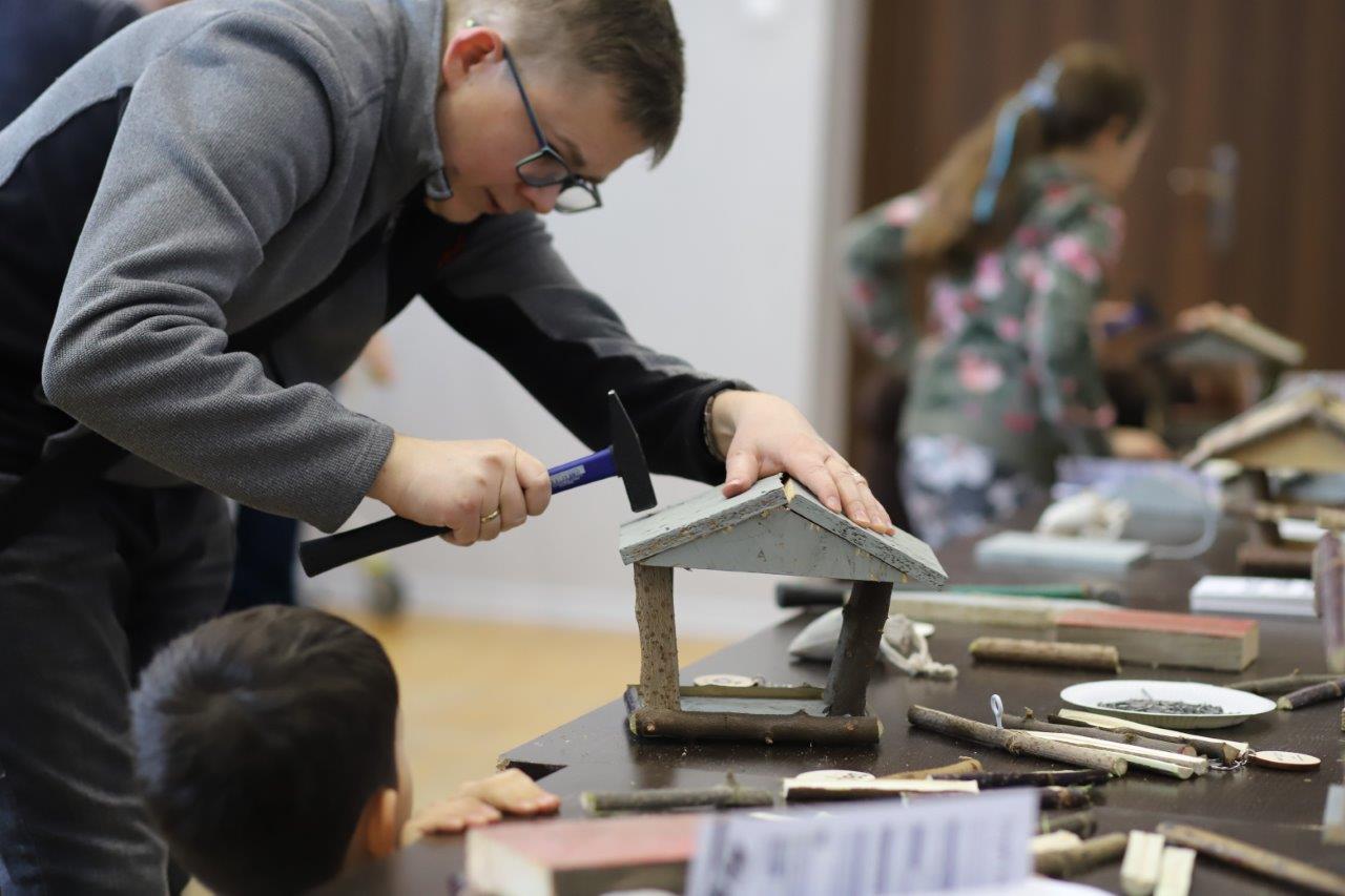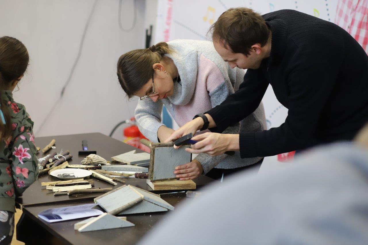 Po zakończeniu części plenerowej uczestnicy wydarzenia ruszyli do Amfiteatru przy ul. Śniadeckich 2, na drugą część spotkania – warsztaty. Radomski Amfiteatr jest miejscem przyciągającym lokalną społeczność i inicjatorem wielu ciekawych działań edukacyjnych i kulturalnych. Podczas warsztatów organizowanych wspólnie przez ośrodek z Unidevelopment zarówno młodsi, jak i starsi, ochoczo zabrali się do budowy karmników. W międzyczasie podsumowali zdobytą w trakcie spaceru wiedzę. W ciągu dwóch godzin powstały piękne, kolorowe karmniki.