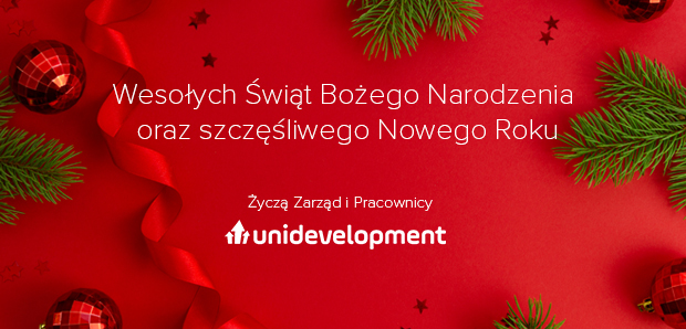 Wesołych Świąt Bożego Narodzenia oraz szczęśliwego Nowego Roku życzą Zarząd oraz Pracownicy Unidevelopment S.A.