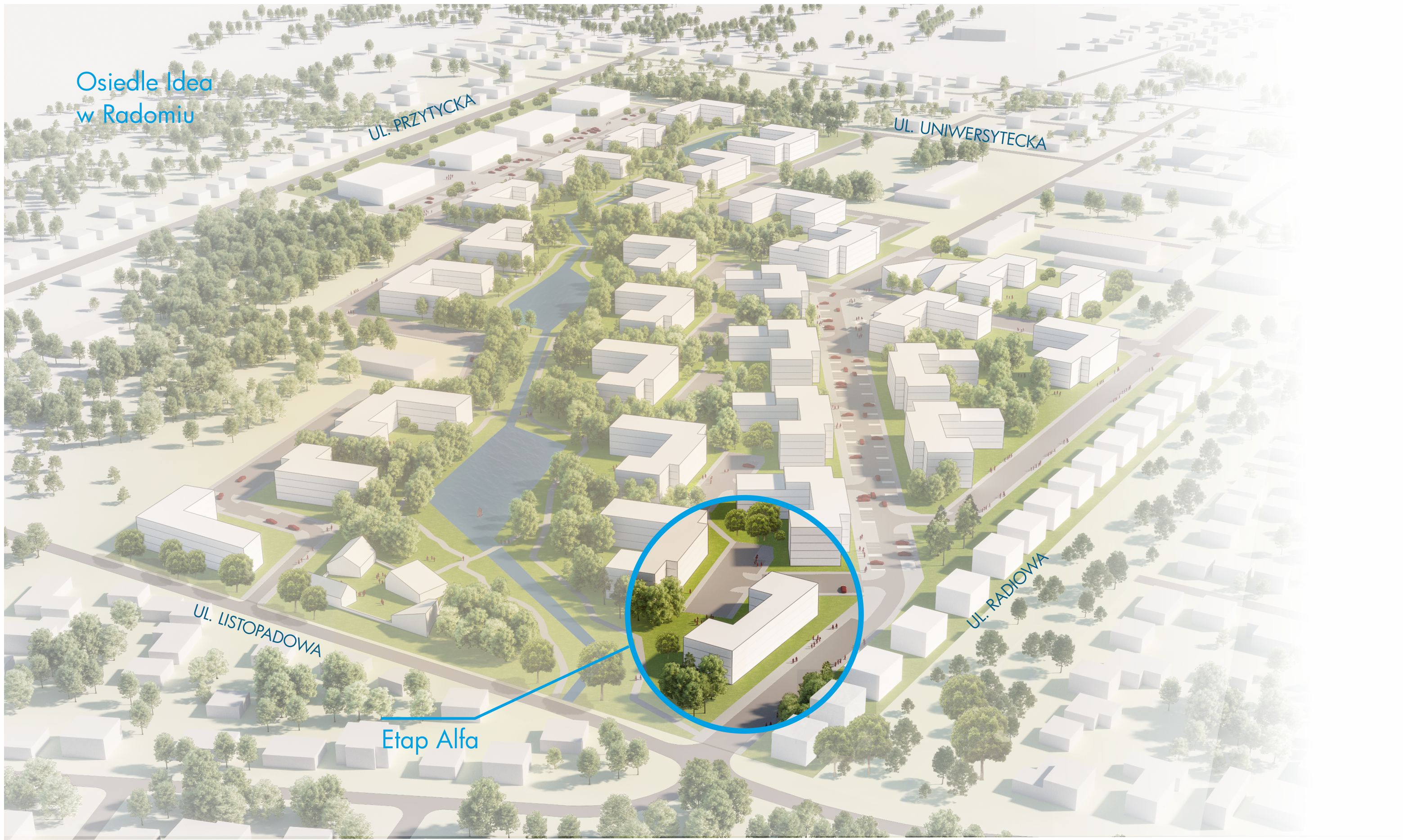 Z dala od miejskiego zgiełku, w spokojnej dzielnicy Wacyn w Radomiu powstaje rodzinne osiedle. Etap Alfa, będący częścią projektu Osiedle Idea, to doskonałe miejsce dla osób ceniących spokój, harmonię i jednocześnie łatwy dostęp do usług niezbędnych w życiu codziennym.