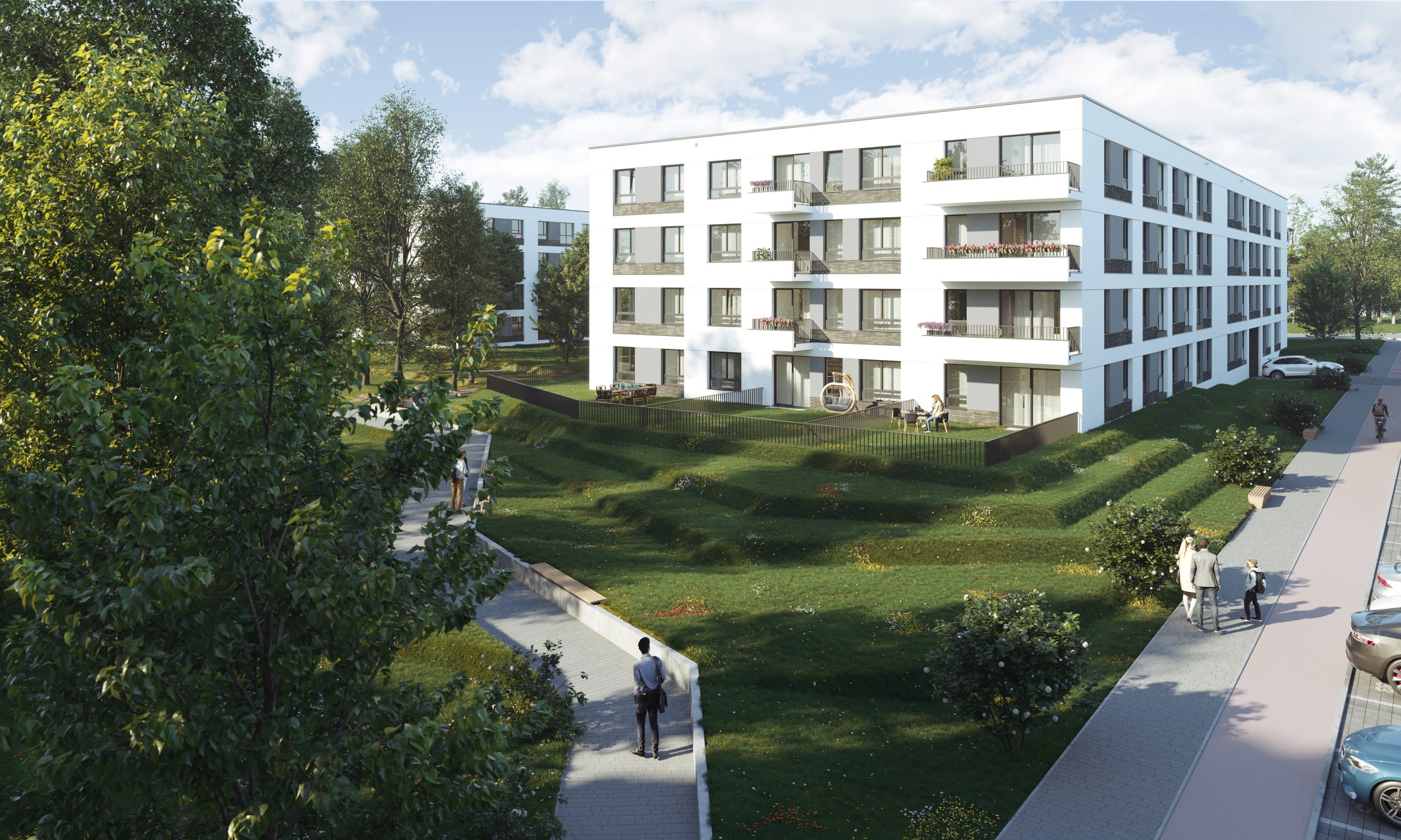 Osiedle Idea rozpoczęliśmy od budowy domu wielorodzinnego oraz zespołu bliźniaczych domów przy ulicy Listopadowej. Alfa jest budynkiem wielorodzinnym w ramach kolejnego etapu projektu, który łączy w sobie modernistyczną architekturę z bliskością natury.