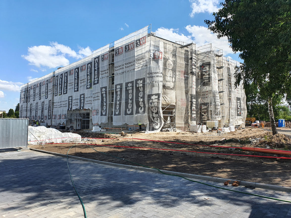 Zakończony został właśnie kolejny etap budowy inwestycji – stan surowy otwarty. Oznacza to, że zakończyły się już wszystkie prace konstrukcyjne budynku i coraz intensywniej prowadzone są prace w jego wnętrzu.