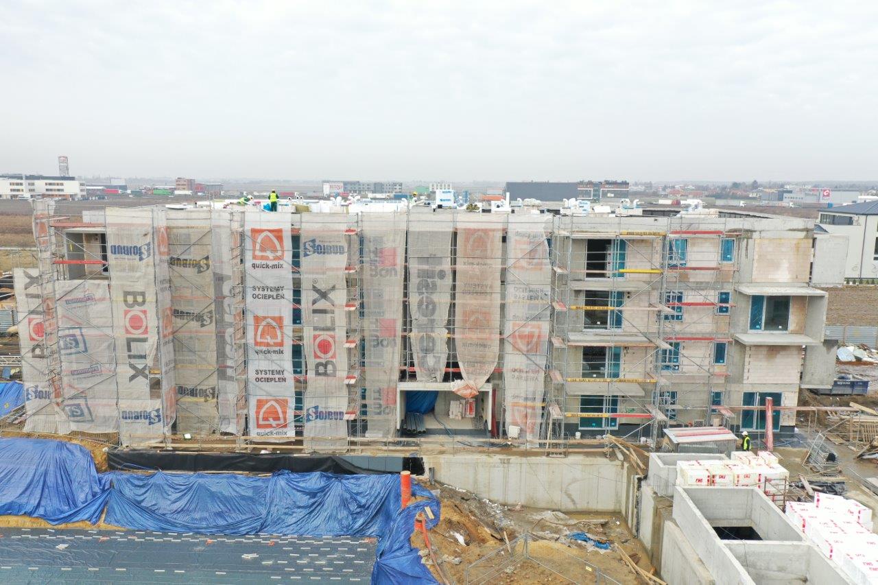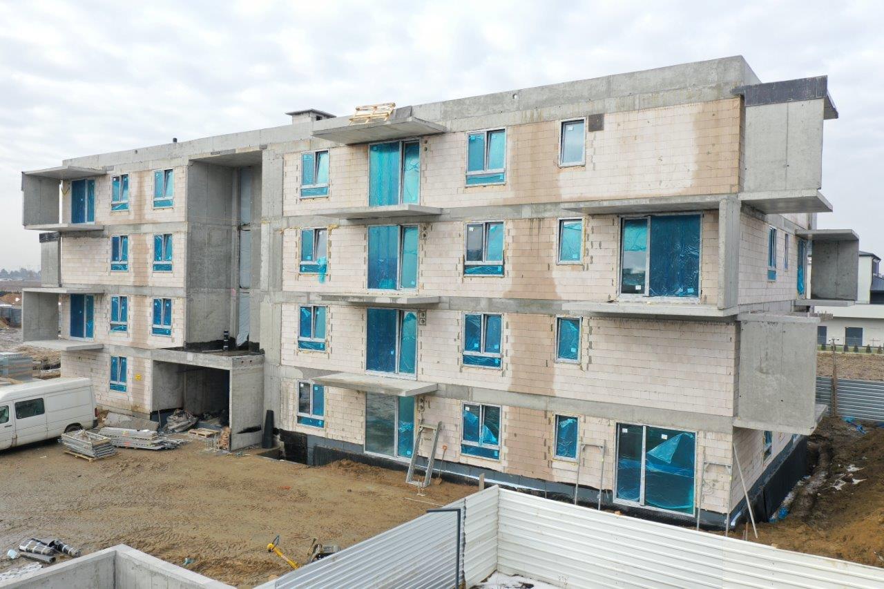 - zakończone zostały roboty murowe wewnętrzne, pokrycie dachowe a także instalacje wodno-kanalizacyjne, centralnego ogrzewania oraz elektryczne w lokalach i częściach wspólnych.