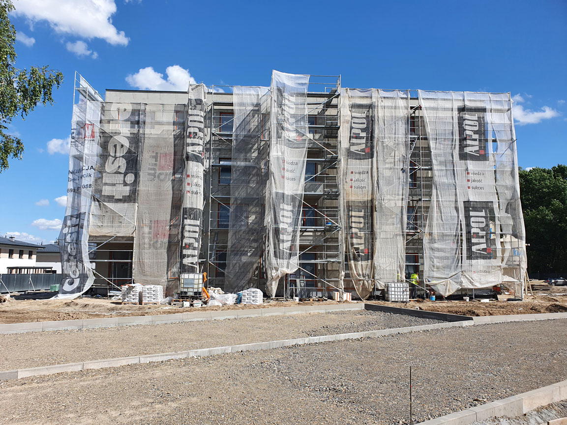 W inwestycji Osiedle Idea Alfa w Radomiu trwają obecnie prace związane z zagospodarowaniem terenu oraz prace elewacyjne od strony południowej.