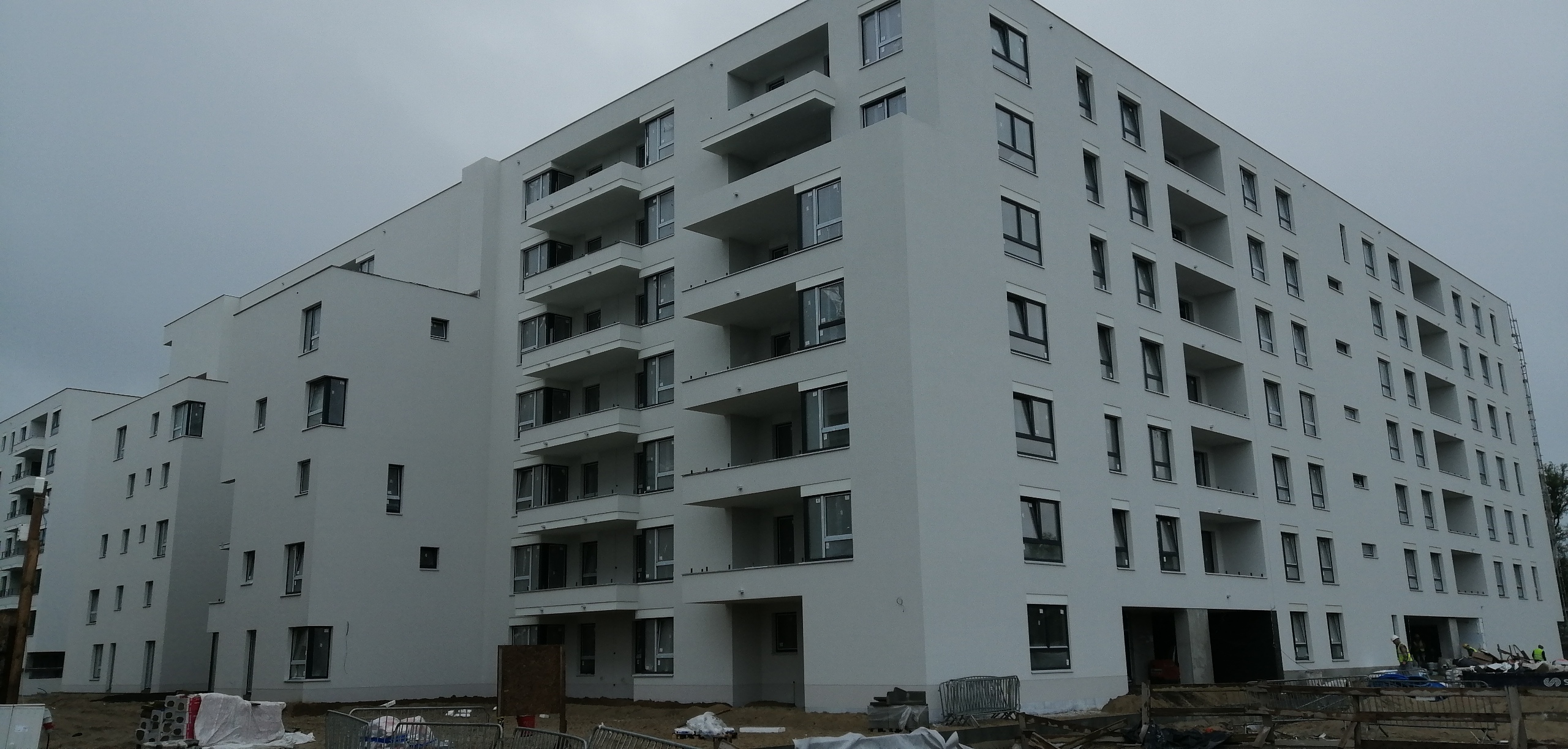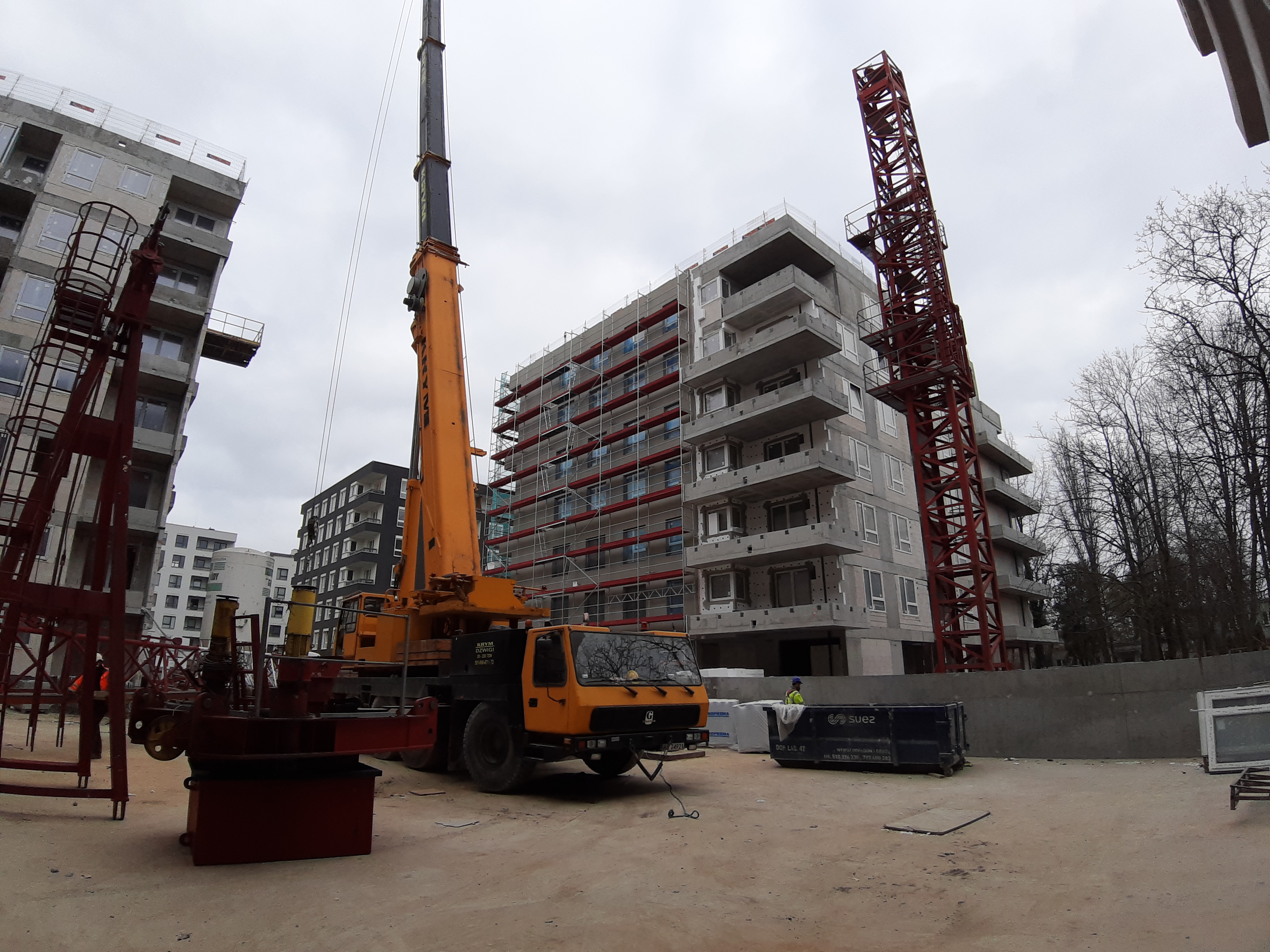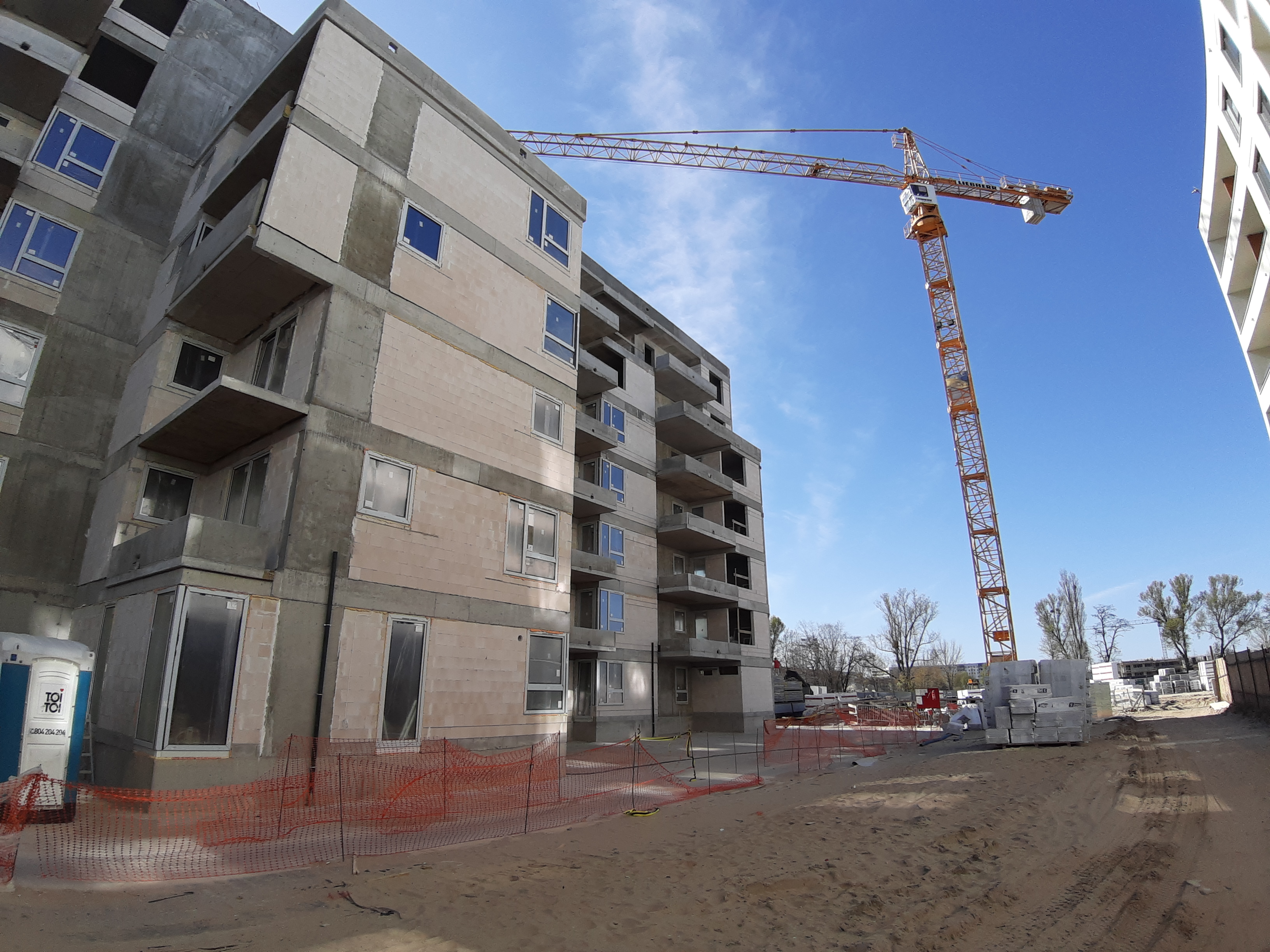 - Część budynku E jest już w rusztowaniach, wykonywane jest również docieplenie budynku.